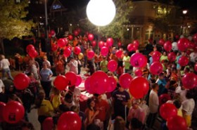 participants often walk each carry lit candles and colorful balloons to show their support for Light the Night. The balloons symbolize the different types of participants -. White balloons are carried by cancer survivors, red balloons for supporters and gold balloons by friends or relatives of loved ones who have lost their battle to cancer