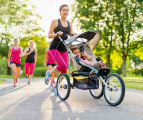 1) Jogging . If you performed before and during your pregnancy, you will love the jogging stroller! Take your baby with you as you get your cardio with products like the i.t. Jogger. The stroller has a nice big sun canopy to keep your baby covered, lots of storage and a smooth ride. Lace up your running shoes and hit the pavement.